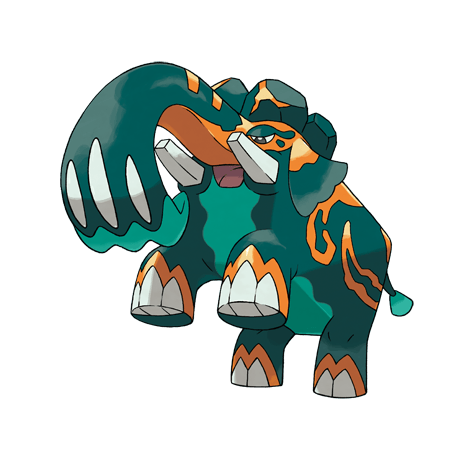Diese Pokémon leben in Herden. Drücken sie mit ihren kräftigen Rüsseln zu, können sie selbst massive Felsen zu Staub zermahlen.