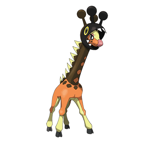 The hardened head from the tail protects the head of the main body as Farigiraf whips its long neck around to headbutt enemies.