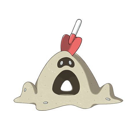 Grudges of the dead have possessed a mound of sand and become a Pokémon. Sandygast is fond of the shovel on its head.