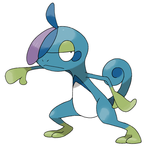 A clever combatant, this Pokémon battles using water balloons created with moisture secreted from its palms.