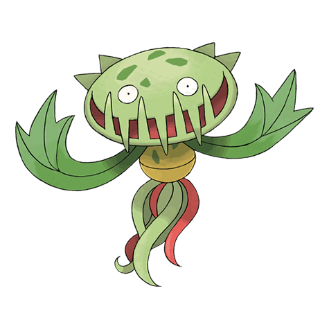 Though this is a plant Pokémon, it has a gluttonous and unruly temperament. Carnivine attacks its prey with its cavernous maw wide open.