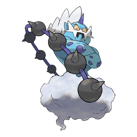 The spikes on its tail discharge immense bolts of lightning. It flies around the Unova region firing off lightning bolts.