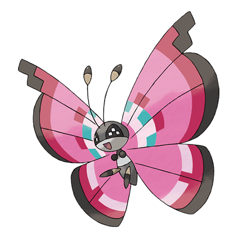 The patterns on this Pokémon’s wings depend on the climate and topography of its habitat. It scatters colorful scales.