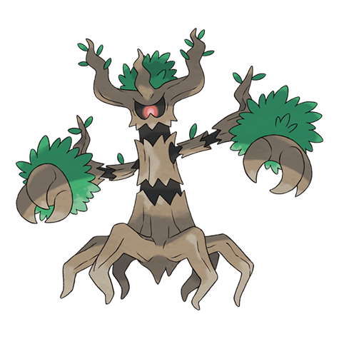 This Pokémon controls trees via roots stretching from its feet, and it will attack anyone that dares to ravage the forest.