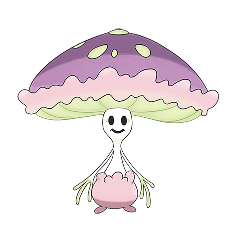 Its flickering spores lure in prey and put them to sleep. Once this Pokémon has its prey snoozing, it drains their vitality with its fingertips.