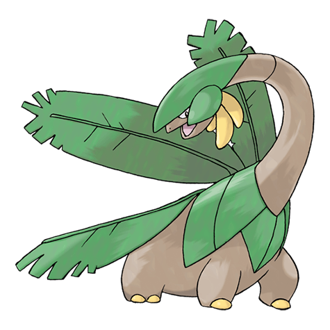 The bunches of fruit around Tropius’s neck are very popular with children. This Pokémon loves fruit, and eats it continuously. Apparently, its love for fruit resulted in its own outgrowth of fruit.
