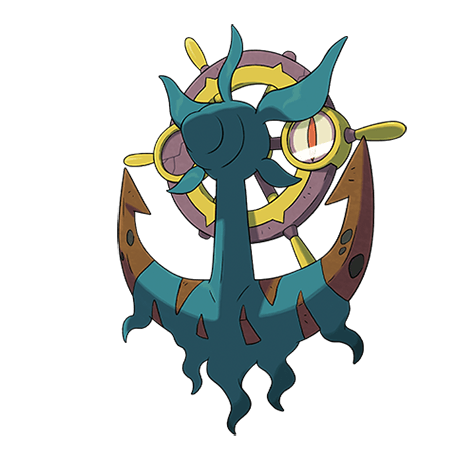 After a piece of seaweed merged with debris from a sunken ship, it was reborn as this ghost Pokémon.