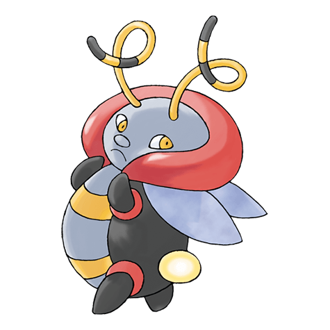 It communicates with others by lighting up its rear at night. It loves Illumise’s sweet aroma.