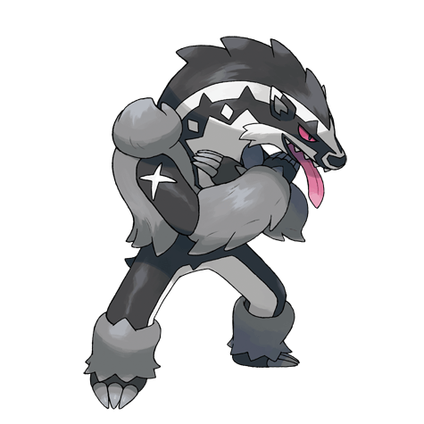 Its voice is staggering in volume. Obstagoon has a tendency to take on a threatening posture and shout—this move is known as Obstruct.